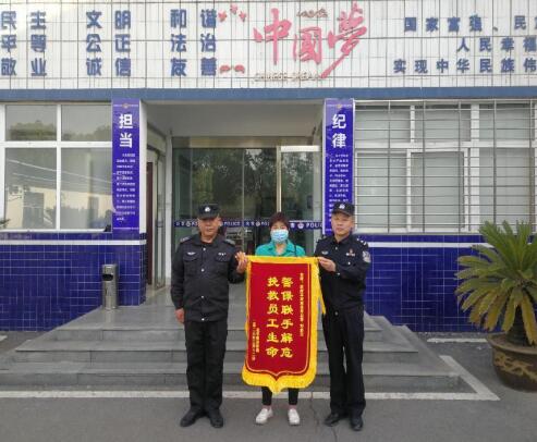 下圖為趙中根家屬向民警和徐隊(duì)長送錦旗: