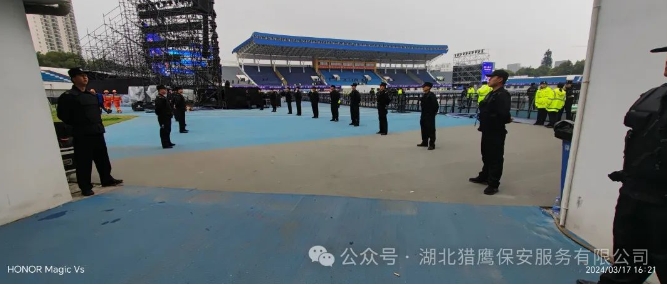 2024年3月17日,“夢之藍(lán)M6+群星演唱會”在襄陽體育場激情開唱。湖北獵鷹保安服務(wù)有限公司在市公安局的領(lǐng)導(dǎo)下,共計(jì)組織800余名..安保員參加安保任務(wù),傾力守護(hù)現(xiàn)場秩序,圓滿完成此次演唱會的安保任務(wù)