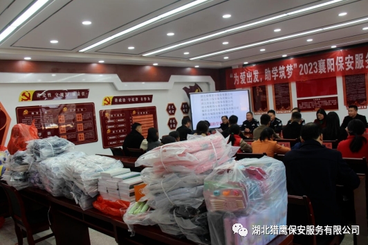 2023年11月24日在襄陽市公安局保安監(jiān)管大隊(duì)的帶領(lǐng)下,湖北獵鷹保安服務(wù)有限公司聯(lián)合襄陽其他保安服務(wù)行業(yè)一行7個(gè)單位走進(jìn)??悼h店埡鎮(zhèn)兩所學(xué)校,為貧困學(xué)生送去了資助金和一批書籍、文具、書包等物資。