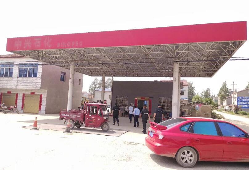 2019年5月27日襄陽獵鷹保安公司協(xié)助配合鐘祥市柴胡派出所治安整頓違建中興石化加油站,現(xiàn)場治安秩序維護中。